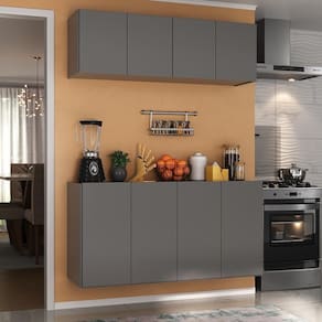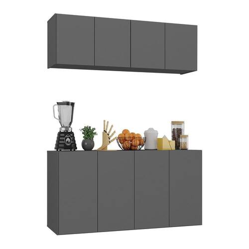 Kit Armário de Cozinha Aéreo e Balcão 4 Portas Multimóveis MP2162 - Grafite