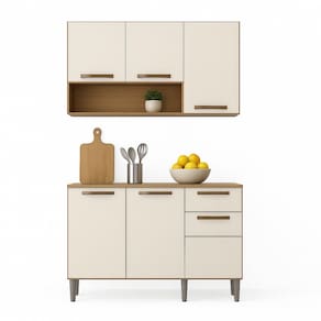 Com design moderno e funcional, o Kit de Cozinha Alba oferece praticidade e estilo para o seu ambiente. Composto por um armário aéreo e um balcão, ambos com 3 portas espaçosas, ele é perfeito para organizar utensílios e mantimentos, otimizando o espaço da sua cozinha. Feito com materiais de alta qualidade, combina durabilidade e elegância. Renove sua cozinha agora mesmo!