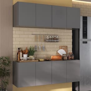 O Kit Armário de Cozinha Aéreo e Balcão 4 Portas Multimóveis MP2161 é perfeito para quem busca estilo e organização no ambiente culinário. Fabricado em MDP com acabamento acetinado (cerca de 20% de brilho), garante durabilidade e resistência. Composto por um balcão com quatro portas e um armário aéreo também com quatro portas, oferece amplo espaço interno para organizar todos os utensílios de cozinha de forma prática. O balcão permite apoiar os itens mais utilizados no dia a dia, mantendo tudo sempre à mão na hora de preparar suas receitas favoritas. Com design clean que confere um visual moderno e sofisticado, este kit combina perfeitamente com qualquer tipo de decoração. Por ser suspenso, otimiza o espaço da cozinha e facilita a limpeza do ambiente.