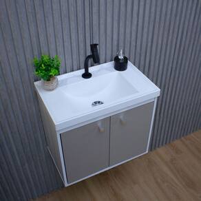 O Gabinete suspenso para banheiro é desenvolvido com estrutura em MDF e a cuba em BMC, garantindo mais durabilidade e resistência ao produto.