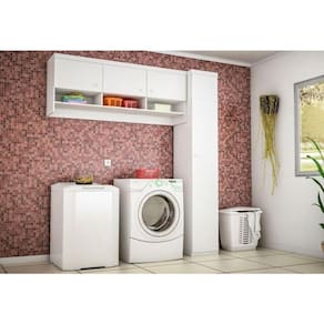 O Kit Armários Multiuso Lavanderia Eloísa 04 Portas Branco, da Phoenix Baby é um kit compacto, composto por um armário de 01 porta e armário aéreo 03 portas com nichos inferiores, todos com excelente espaço interno para organizar sua área de serviço. Estrutura de excelente qualidade em MDF que visa boa resistência e durabilidade. Excelente, né?