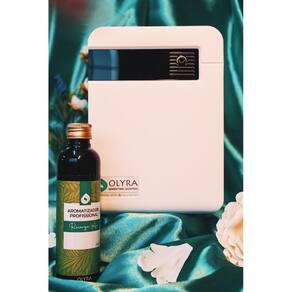 esse aparelho nebuliza a essência, criando uma névoa de aroma no ambiente, fazendo com que a aromatização fique sempre em destaque sem incomodar aos que ali estão. Sua programação pode ser realizada através do wi-fi para redes que não são 5g ou bluetooth. Diferenciais:
