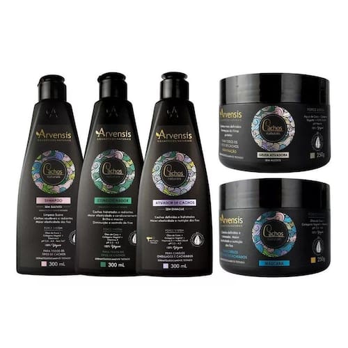Kit arvensis cachos ondulados e cacheados + geleia alta 250gNeste anúncio contém:1 unidade shampoo cachos arvensis 300ml1 unidade condicionador cachos arvensis 300ml1 unidade ativador cachos ondulados e cacheados arvensis 300ml1 unidade máscara ondulados e cacheados arvensis 250g1 unidade geleia ativadora alta fixação arvensis 250gShampoo cachos naturais arvensisO shampoo cachos naturais foi desenvolvido com uma formulação livre de sulfato e sal, especial para a limpeza suave de todos os tipos de cabelos cacheados. Elaborado através da perfeita combinação de óleo de coco, colágeno vegetal e vitamina e, o shampoo cachos naturais proporciona inúmeros benefícios como reparação dos fios danificados, aumento da elasticidade, maciez e brilho extra. Sua ação protetora ainda confere resistência, formação de filme e controle de frizz, além de manter a umidade natural para cachos nutridos e radiantes.Principais ativos:- óleo de coco: alto poder umectante e hidratante, repõe nutrientes e age na diminuição do frizz. Ainda tem ação de selamento de cutículas evitando pontas duplas.- colágeno vegetal: fornece aminoácidos e proteínas para nutrição funcional da fibra, promove hidratação e restaura a elasticidade dos fios. Forma um filme flexível ultra substantivo que protege e define os cachos, além de atuar no controle do frizz.- ph 5-6Indicação: todos os cachos.Condicionador cachos naturais arvensisO condicionador cachos naturais foi desenvolvido com uma formulação especial, ideal para a hidratação de todos os tipos de cabelos cacheados. Elaborado através da perfeita combinação de óleo de coco, colágeno vegetal e vitamina e, o condicionador cachos naturais proporciona inúmeros benefícios como nutrição avançada, reparação dos fios danificados, condicionamento equilibrado, aumento da elasticidade, maciez e brilho extra. Sua ação protetora ainda confere resistência e controle de frizz, além de manter a umidade natural para cachos nutridos e radiantes.Principais ativos:- óleo de coco: alto poder umectante e hidratante, repõe nutrientes e age na diminuição do frizz. Ainda tem ação de selamento de cutículas evitando pontas duplas.- colágeno vegetal: fornece aminoácidos e proteínas para nutrição funcional da fibra, promove hidratação e restaura a elasticidade dos fios. Forma um filme flexível ultra substantivo que protege e define os cachos, além de atuar no controle do frizz.- ph: 4-4,5Indicação: todos os cachos.Ativador de cachos ondulados e cacheados arvensisA ação protetora do ativador de cachos ondulados e cacheados confere resistência, formação de filme, controle de frizz, mantendo a umidade natural e definindo cachos radiantes. Contém filtro solar. 300ml - ph 4,0 - 4,5Indicação: cabelos ondulados e cacheados 2a / 2b / 2c / 3a .Principais ativos: óleo de coco; colágeno vegetal.Máscara ondulados e cacheados cachos naturais arvensisDesenvolvida para hidratar, nutrir, ativar e definir os cachos. Toda a linha cachos naturais confere tratamento eficiente que resulta cabelos macios, maleáveis e iluminados.Seus principais ativos fornecem aminoácidos e proteínas para nutrição funcional da fibra, hidratação funcional; restaura elasticidade dos fios, conferem alto poder umectante, nutrição profunda e consequentemente mais vitalidade aos cabelos.Indicação: cabelos ondulados e cacheados 2a / 2b / 2c / 3a .Principais ativos: óleo de coco; colágeno vegetal.A máscara ondulados e cacheados promove hidratação equilibrada com ação intensiva proporcionando inúmeros benefícios como nutrição avançada, reparação dos fios danificados, maciez e brilho extra. 250g - ph 3,5 - 4,5Geleia ativadora cachos alta fixação arvensis