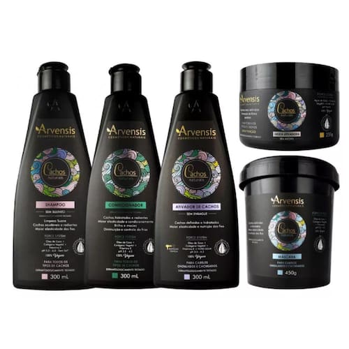 Kit Arvensis Cachos Shampoo Condicionador Ativador Máscara Ondulados Geleia Suave