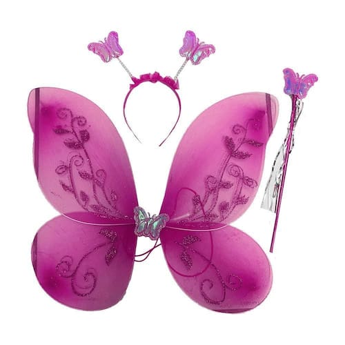 Kit asa, tiara e varinha borboleta fada simples rosa pink composição: plástico contém: 1 asa, 1 tiara e 1 varinha cor: rosa pink magenta tamanho da asa: 41x38cm atenção: imagem meramente ilustrativa. Pode ocorrer mudanças no tom da cor para o produto real ou mudanças na embalagem sem aviso prévio por parte do fornecedor/fabricante.