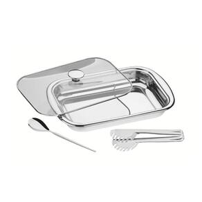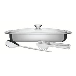 Mais Informações - Peças feitas em aço inox, mantêm suas características , preservando a beleza, a higiene e a durabilidade do material.Acabamento em brilho.Design moderno proporciona requinte ao compor a mesa.Ideal para assar e servir.Podem ser lavadas diariamente na máquina de lavar louças.Com tampa de vidro transparente que permite a visualização dos alimentos.