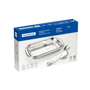 Beleza e praticidade na mesa. O Kit para Assar e Servir Tramontina Cosmos em Aço Inox com Tampa de Vidro 3 Peças é ideal para assar e servir com elegância. Com peças feitas em aço inox, mantêm suas características , preservando a beleza, a higiene e a durabilidade do material. Com design moderno proporciona requinte ao compor a mesa e a tampa de vidro transparente que permite a visualização dos alimentos. A Linha Cosmos é feita para cozinhar com amor e beleza.
