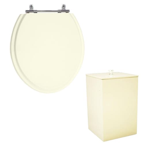 Kit Assento Laque Oval Biscuit+Lixeira Mdf Quadrada Biscuit