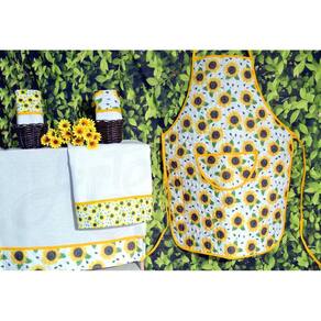 Kit Avental de Cozinha e Pano de Prato 5 Peças - Flor de Girassol
