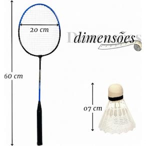 Composição do Kit: - 2 raquetes produzidas em material leve e resistente altura aproximada: 60 cm - 2 petecas de alta durabilidade com bico reforçado - 1 bolsa com alça para e armazenamento