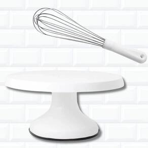 Kit confeiteiro com bailarina giratória e batedor tipo pêra. Ideal para quem está iniciando ou renovando utensílios de confeitaria.Acessórios