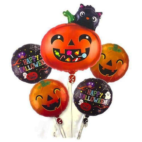 MODELOS DISPONÍVEIS: Modelo: Kit Balão Halloween - 4x Balão Redondo 43cm x 43cm - 1x Abobora 49,5cm x 49,5cm - Material: Polietileno e Folha Metalizada