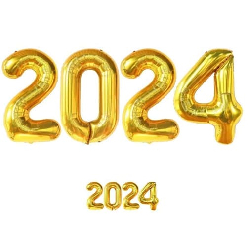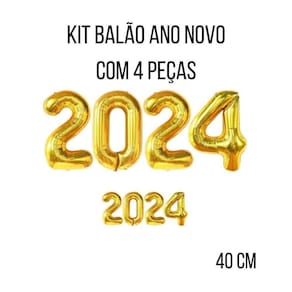O kit contém: 4 balões metalizados que formam 2024 Altura de cada balão: 40cm