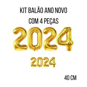 O kit contém: 4 balões metalizados que formam 2024 Altura de cada balão: 40cm