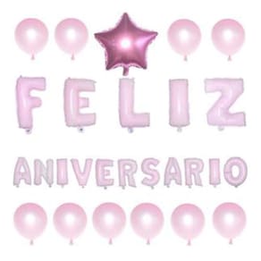 Kit Balão Metalizado Feliz Aniversário Festa 27 Peças Rosa Kit de Balões Feliz Aniversário Rosa contendo 27 unidades conforme descrição abaixo: