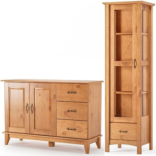 • 1 x Buffet Aparador Madeira Maciça 2 Portas 3 Gavetas 120 cm Bella 1 x Cristaleira de Madeira Maciça 1 Porta de Vidro Bella Manual de Montagem Acessórios de Montagem