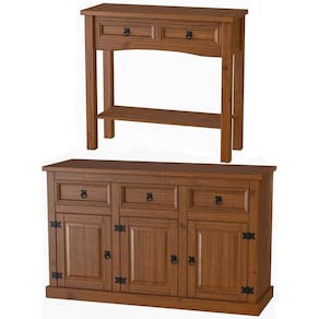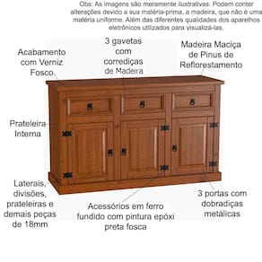 • 1 x Balcão Buffet Aparador Madeira Maciça 3 Portas 3 Gavetas Imperial 1 x Aparador de Sala Rústico 100% Madeira 2 Gavetas Imperial Manual de Montagem Acessórios de Montagem