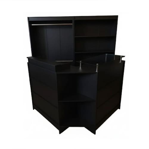 Descrição Comercial: Kit composto por: - 1 Prateleira, 1 Cabideiro Duplo, 1 Balcão Caixa em L Ideal Para Lojas material 100% MDF.