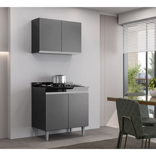 Kit Balcão Cooktop e Armário Aéreo Ellen 4 Portas Preto Grafite Maderatto Móveis - Grafite | Preto