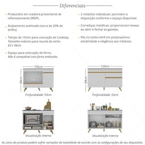 Conteúdo da Embalagem: 1 (um) Balcão para Cooktop com Tampo 105cm 1 (um) Balcão com Tampo 120cm Kit Ferragem Manual de Montagem