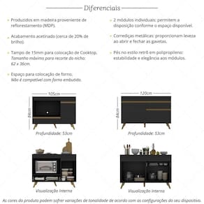 Conteúdo da Embalagem: 1 (um) Balcão para Cooktop com Tampo 105cm 1 (um) Balcão com Tampo 120cm Kit Ferragem Manual de Montagem