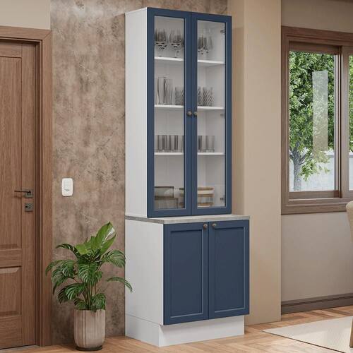Além de agregar sofisticação ao ambiente, ela oferece visibilidade para suas louças, permitindo que você mantenha suas peças favoritas sempre à vista e bem arrumadas. O balcão inferior complementa o conjunto com praticidade e funcionalidade.