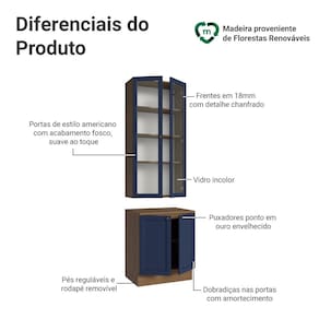 Kit Balcão + Cristaleira 70 cm Rustic/Azul Vik Madesa 02
