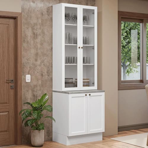 Além de agregar sofisticação ao ambiente, ela oferece visibilidade para suas louças, permitindo que você mantenha suas peças favoritas sempre à vista e bem arrumadas. O balcão inferior complementa o conjunto com praticidade e funcionalidade.