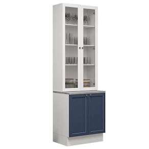O acabamento de alta resistência da estrutura é em Branco, das frentes em Azul e Branco e possui uma textura suave ao toque. O destaque fica por conta do detalhe chanfrado das frentes, que forma molduras elegantes e dá profundidade ao design, refletindo o estilo americano com um toque moderno. Outro diferencial está nos puxadores ponto em ouro envelhecido, feitos com metal resistente, trazem personalidade e um charme único.