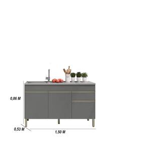 Kit Balcão de Pia sem Tampo e Aereo 150 cm 6 Portas 1 Gaveta Madrid - Kit's Paraná