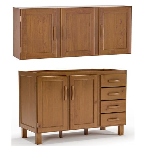 • 1x Kit Balcão e Armário Aéreo 120 cm 100% Madeira Maciça Frida
