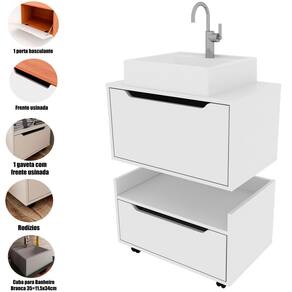 • Informações Adicionais: 1 gaveta com frente usinada/Acompanha rodízios/ Não acompanha torneira