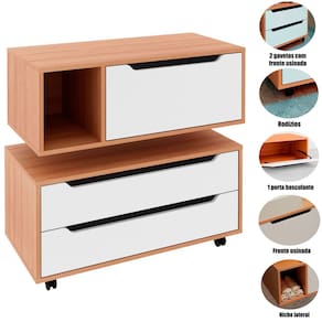 O Kit Balcão e Gabinete de Banheiro é a opção ideal para quem deseja compor um ambiente funcional, prático e com design harmonioso. Composto por dois móveis complementares, um armário para gabinete com gavetas e rodízios e um armário suspenso com porta e nicho lateral, o kit oferece versatilidade e organização, adaptando-se perfeitamente a banheiros modernos e bem planejados.