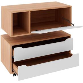 • 1 x Gabinete de Banheiro 80 cm com 1 Porta e Nicho 1 x Balcão para Gabinete de Banheiro com 2 Gavetas e Rodízio Manual de Montagem Acessórios de Montagem