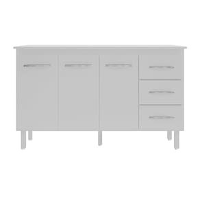 Composto por 2 portas, 3 gavetas e 1 prateleira interna, proporciona excelente espaço de armazenamento para utensílios, panelas e mantimentos. Os 5 pés plásticos com regulagem garantem estabilidade e permitem ajustes para nivelamento, com altura de 16,5 cm que pode chegar até 18 cm.