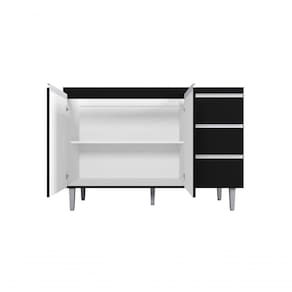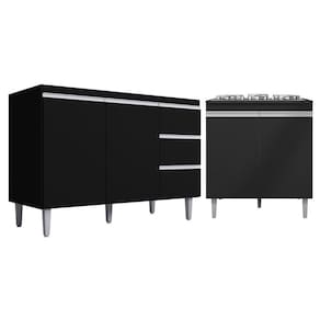 Kit Balcão Gabinete Para Pia Andreia 100cm C/ Balcão Cooktop 4 Ou 5 Bocas - Ajl Móveis Cor Preto