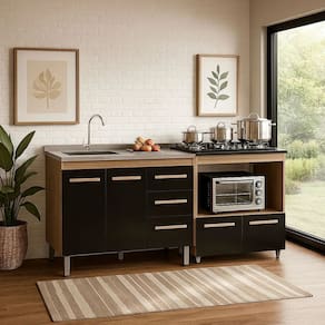 Kit balcão para pia 120 cm Bianca + balcão para cooktop 5 bocas Elisa.
