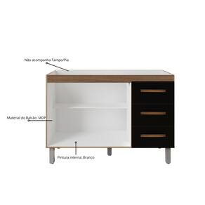 Kit Balcão Para Pia 120cm Bianca + Balcão Para Cooktop 5 Bocas Elisa - Savana/Preto