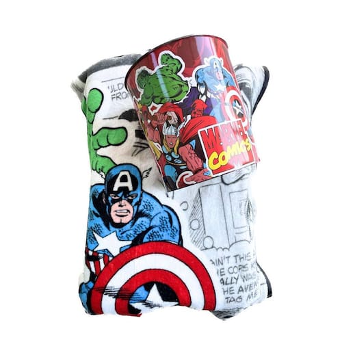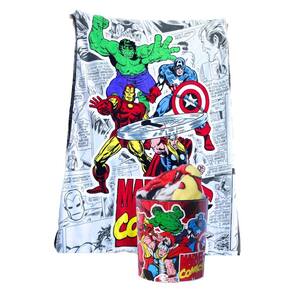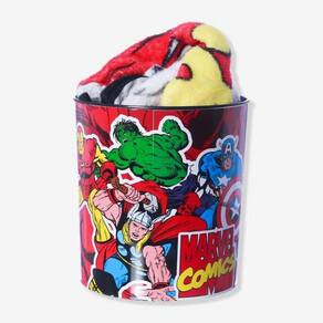 Personagem: Vingadores Marca Zonacriativa Licenciador: Disney Cor Predominante: Cinza manta Vermelho Balde Tecido Malha Plush 100%Poliéster