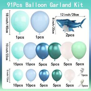 Decoração com tema oceânico: este kit de arco de balão inclui balões com tema de tubarão, baleia, polvo e oceano, perfeitos para criar uma atmosfera subaquática em sua próxima festa. Material premium: o conjunto inclui balões de látex e alumínio de alta qualidade, garantindo cores vibrantes e durabilidade duradoura para sua celebração. Perfeito para festas de aniversário: ideal para aniversários infantis com temas oceânicos, este kit cria um ambiente mágico e divertido com criaturas marinhas e vida marinha para um evento inesquecível. Decoração de festa versátil: ótimo para uma variedade de eventos, como aniversários, chás de bebê e festas temáticas do oceano ou do mar, este conjunto de balões adiciona um toque divertido e vibrante. Configuração fácil: com balões de 5 a 18 polegadas, este kit oferece flexibilidade e pode ser facilmente inflado com ar ou hélio para criar uma exibição impressionante em minutos.