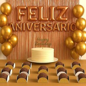 Kit Balões Decoração Feliz Aniversário Cortina Dourado Festa