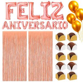 - 2 cortinas rose gold - 25 balões dourado cromado - 100 forminhas de brigadeiro branco - 100 forminhas de brigadeiro dourado imita glitter - 1 kit de balão feliz aniversário Marca: Não Informado Ean: 7896982764176
