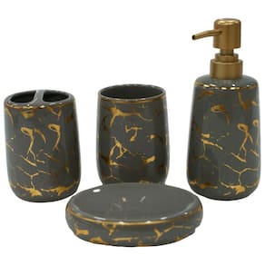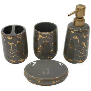 Lindo Kit Bancada de Banheiro da Quanhe estilo mármore fabricado em cerâmica resistente e de alta durabilidade. Apresenta design charmoso, composição perfeita para levar mais estilo e facilidade ao seu banheiro!