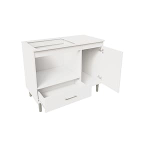 Montagem Flex: Com painéis traseiros e laterais que permitem uma montagem flexível, a bancada se adapta facilmente ao seu espaço, garantindo praticidade na instalação.