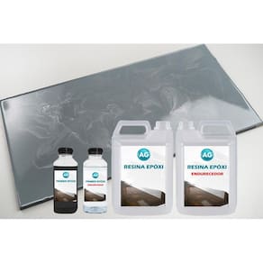 Após a cura do primer, é hora de aplicar a Resina Epóxi de acabamento. Misture 200g da Resina Epóxi AG com 100g do Endurecedor Epóxi AG. Novamente, misture bem os componentes até obter uma mistura homogênea. Essa resina será utilizada como o acabamento final.