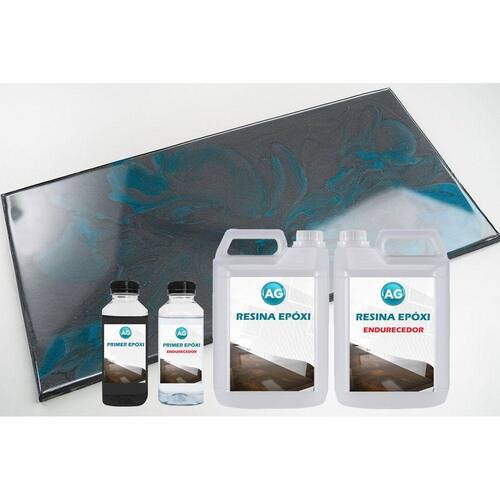 O Kit Bancada Metálico Cinza Cetim / Turquesa Pacifico Ag Por conta com um primer epóxi, que deve ser preparado misturando 500g do Componente A Resina na Coloração Preta com 100g do Componente B Endurecedor . Misture bem os componentes até obter uma mistura homogênea. O primer deve ser aplicado de acordo com as instruções específicas encontradas na embalagem do produto.