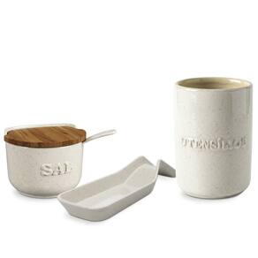 Kit Bancada Saleiro + Porta Utensílios + Descanso Colher Plus Flocos Ceraflame - Itens Inclusos