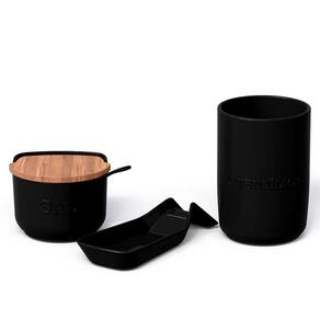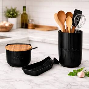 Kit Bancada Saleiro + Porta Utensílios + Descanso Colher Plus Preto Ceraflame - Itens Inclusos