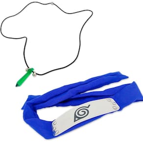 Kit Bandana Vila da Folha Azul + Colar Verde - Naruto Contém: 1 Bandana Vila da Folha Azul 1 Colar Tsunade Verde Tipo da Bandana: Cravada Colar: • Tamanho da pedra: 5 cm• Tamanho do cordão: 35 cm• Material da pedra: Resina translucida• Material do cordão: Borracha• Cor: Verde