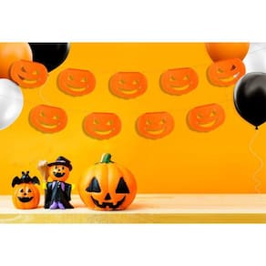 BOOOOO Se você está procurando uma opção de decoração de Halloween prática e criativa, o Kit de Bandeirinha Abóbora Decorativa que oferecemos é perfeito para vocêEssas Bandeirinhas foram feitas de Papel Seda, com muita criatividade e carinho, possuindo um total de 9 Abóboras em cada pacote, suspensas por um barbante que tem o comprimento de 5 metros. O melhor é que são 10 pacotes que vêm no kit, ou seja, você terá um total de 50 metros de bandeirinhas para decorar o seu espaçoAdquira já o seu Kit de Bandeirinhas Decorativas e faça uma decoração incrivelmente assustadora de Halloween com muita facilidade e economia